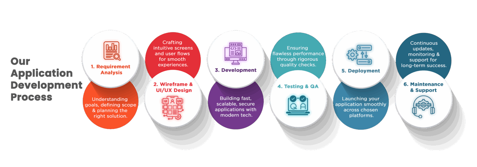 The process of web application development involves wireframing, designing, building, and deploying software applications that are accessed on the web browser. Example: CRM software, Email marketing software, and call center software.